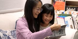 顧客陳玟伶說這家書店因為鄰近於小學,有時候放學就會帶她的子女胡馨尹來這邊寫功課。這邊有很多的書,來自四面八方捐書者捐的書,所以它的東西會比較多元化,所以胡馨尹的閱讀習慣就是這樣子養成的。這邊的活動規模都會比學校來得再小一點,所以它的深入度會比較深。