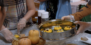 注腳雙溪創辦人簡淑慧說道,南瓜糕不純粹只是南瓜本體,雙溪在9月到隔年的3月都有機會吃到森林裡面的椴木香菇,它也是雙溪的第四寶。讓大家是可以自己體驗自己操作,在這整個過程之中,我們就有機會來說菜。