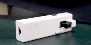 開發團隊學生張竣皓說明,智慧導盲杖的安裝方式相當方便:「它有這個滑槽,就是直接扣上去。」目前產品主要有兩項功能,第一是高低差的辨識功能,能夠透過紅外線偵測前方路面的高低變化,當前方遇到樓梯,或是騎樓到馬路之間的高低差時,導盲杖會透過語音方式發出提示,提醒使用者注意。第二項功能是導盲磚的辨識,導盲杖裝置利用前面攝像頭,針對前方的影像辨識導盲磚。辨識功能利用邊緣運算,再透過AI演算法去做運算,當對準導盲磚的時候,就會有提示音效。