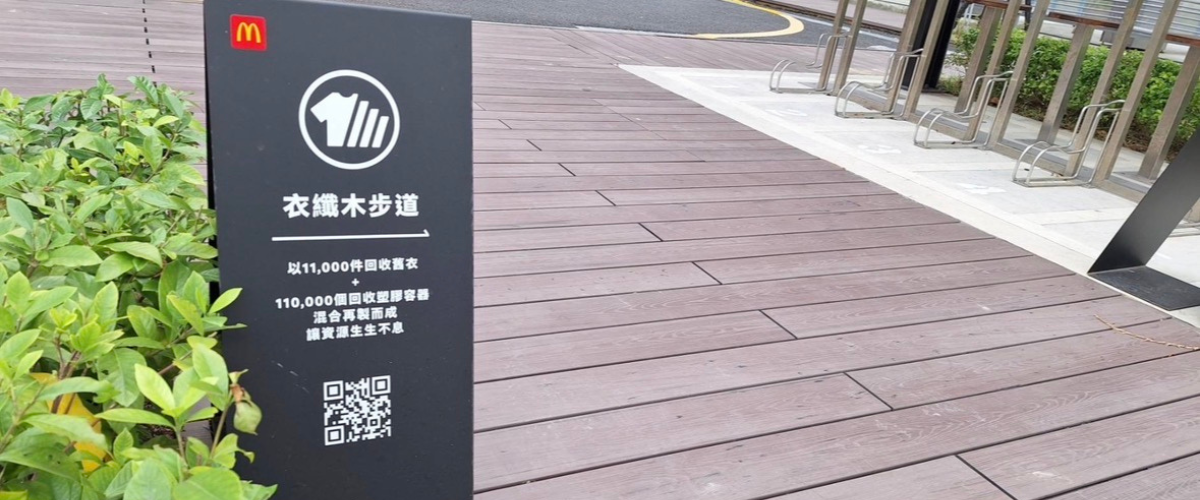 林正雄博士分享目前大概有四十幾家麥當勞的門市,已經都使用他們制服做成了衣纖木的建材,甚至像GU,民眾拿著舊衣去到GU,GU回收了這些舊衣之後,也都會委託他們再製成衣纖木,最終就可以變成衣架、手機座,或者是建材,甚至是家具的一些產品,再回到消費的通路當中去使用。