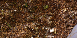 鶯歌國小學生簡同學說明,第一階段會先將母菌、粗糠、落葉等等的東西加入廚餘,然後攪拌均勻,第二階段拿出來翻堆,讓它接觸到空氣陽光,有更多的養分可以讓它繼續發酵,接著第三階段就可以加入落葉,就會變成個堆肥,還有肥料。